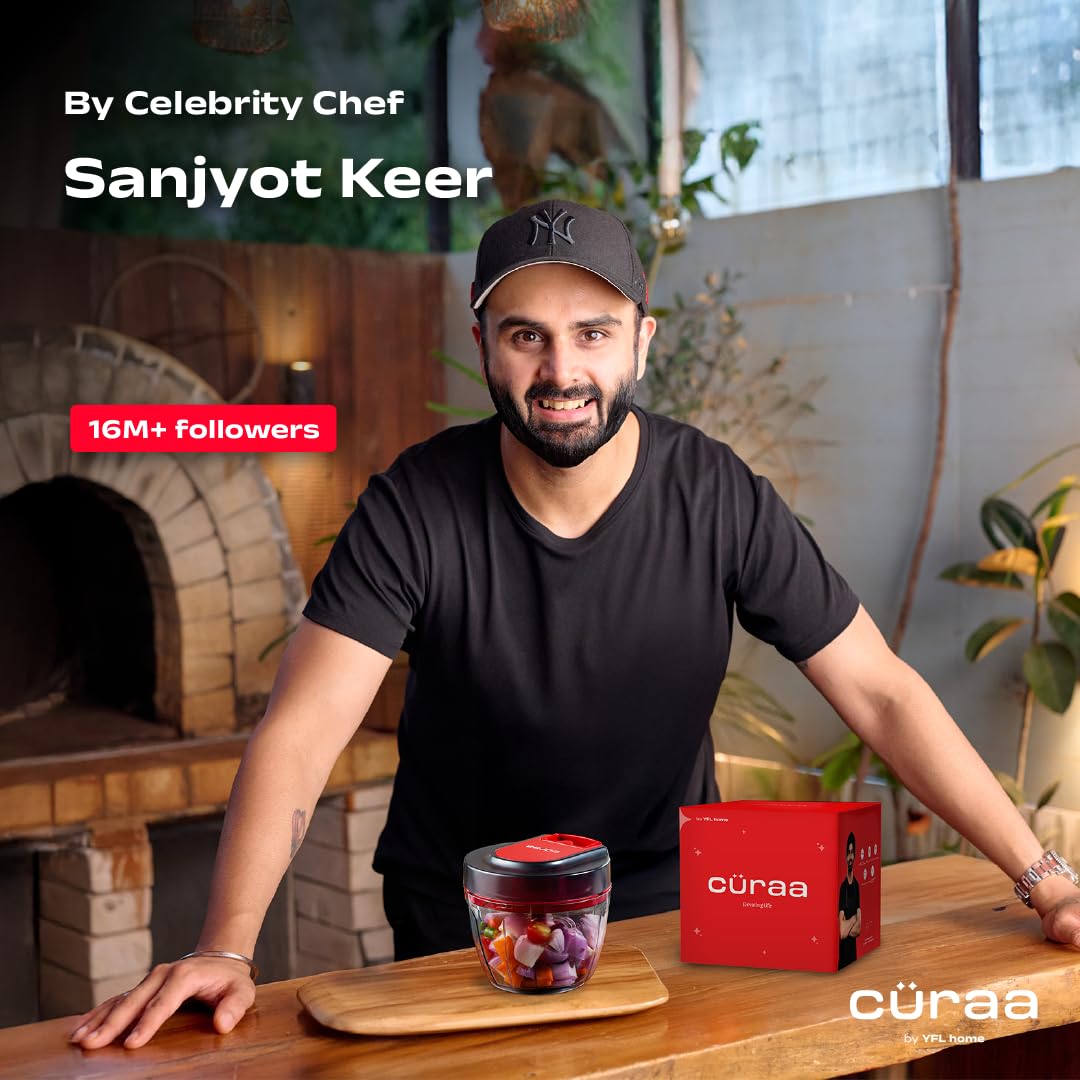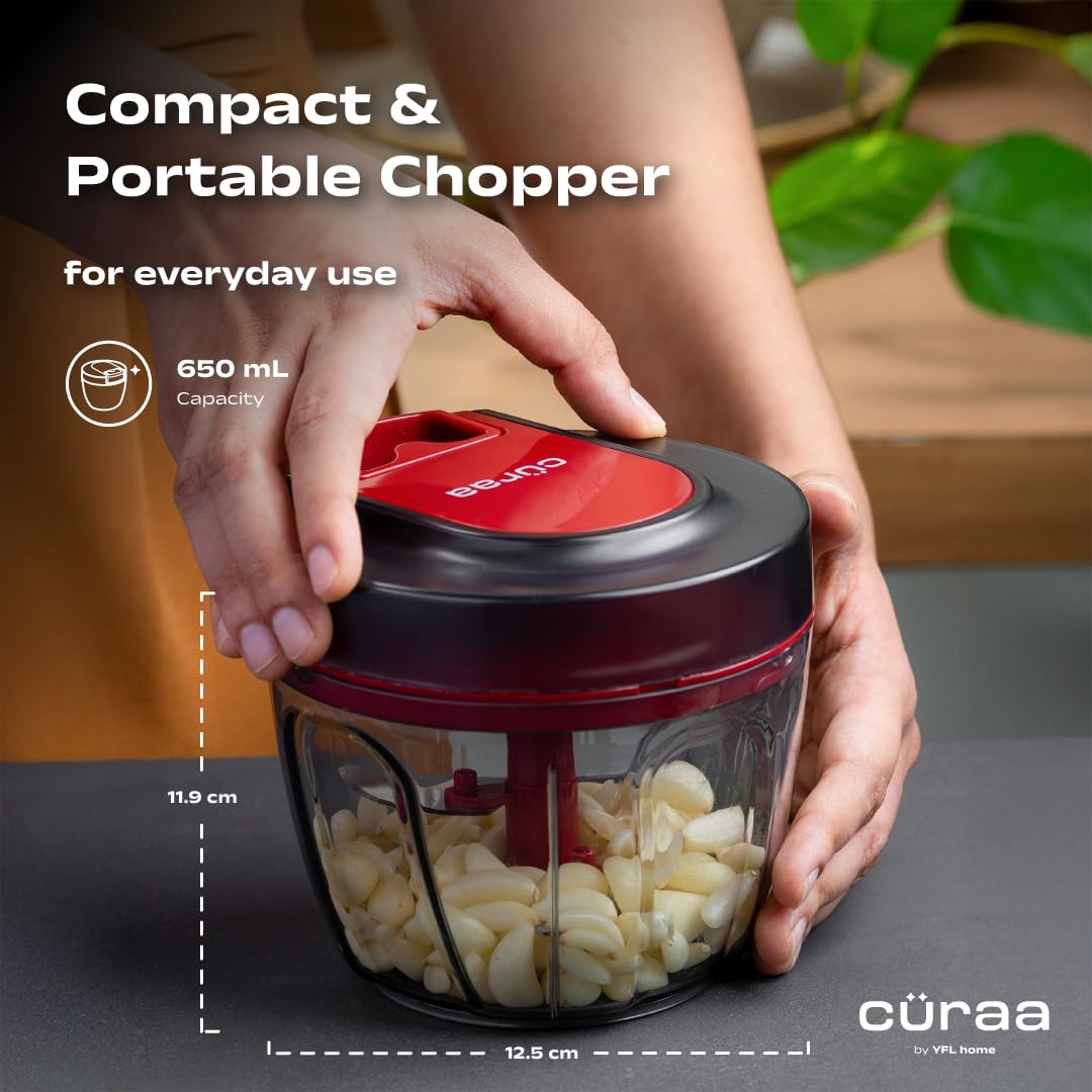 Cüraa by YFL Home ChopLab Lite Chopper, Chops 24× faster than a knife – Save time and effort with every meal prep. Perfect for chopping vegetables, herbs, and nuts in seconds.
