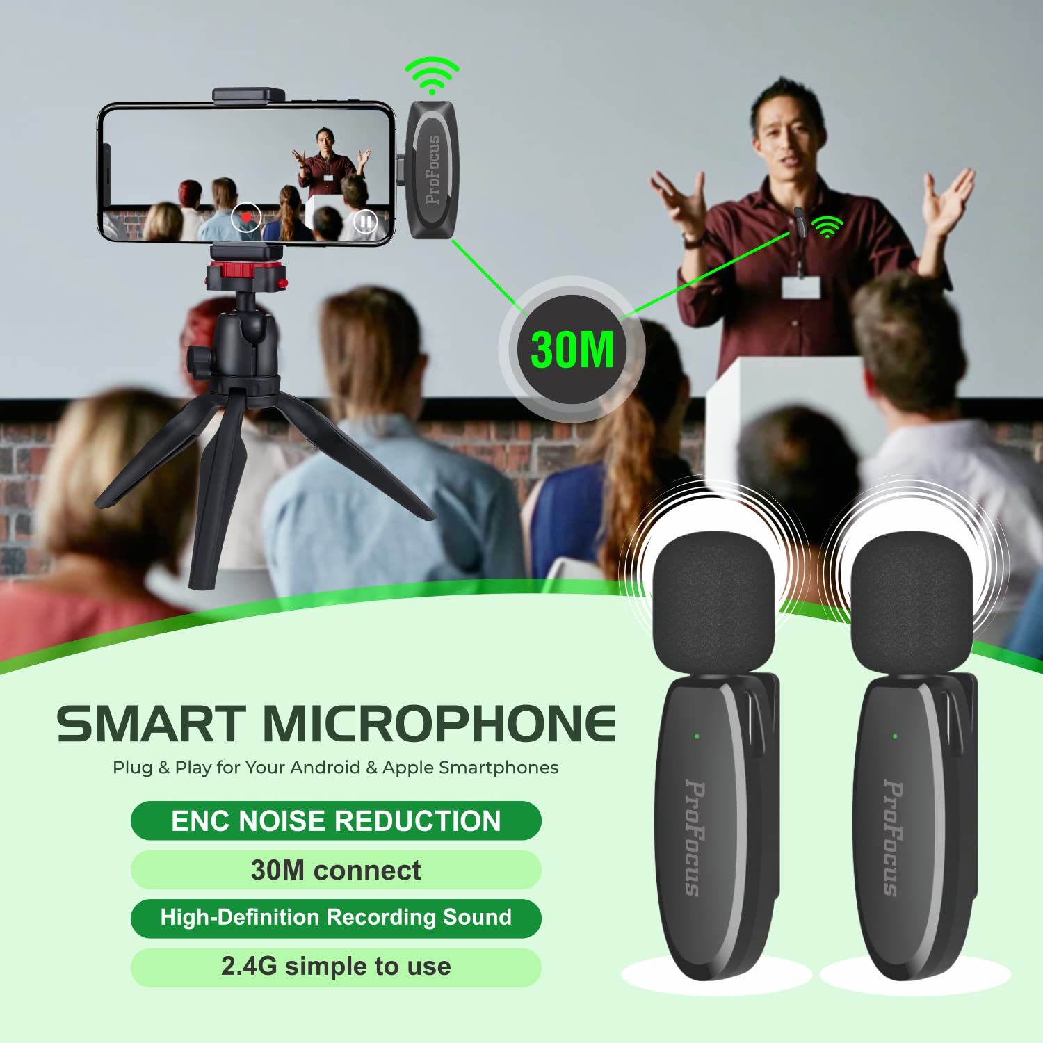 This Product is a Smart Wireless microphone that provides professional-grade recording output. Plug and Play, no app required. Multiple uses: It can be used in Online live broadcast, video vlog shooting, program interview, recording, video teaching and other occasions. The Wireless Microphone consists of two parts, one is Microphone transmitter, the other one is Type-C Receiver.